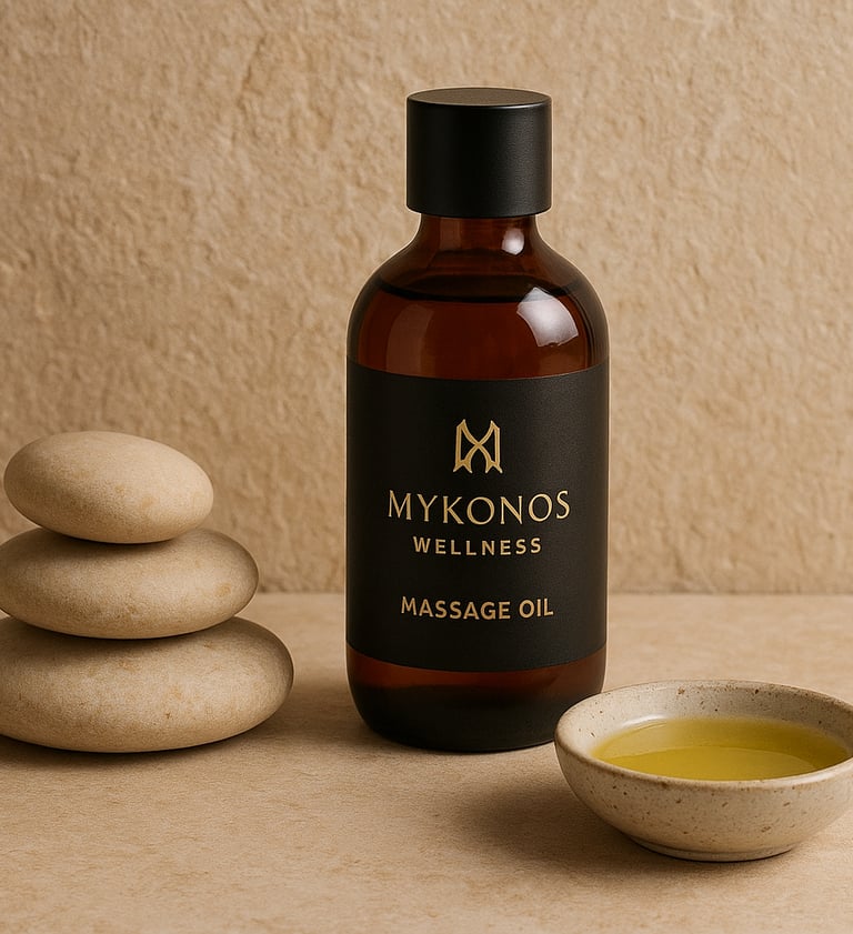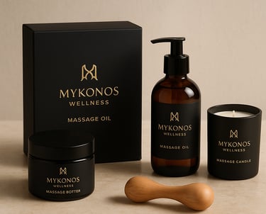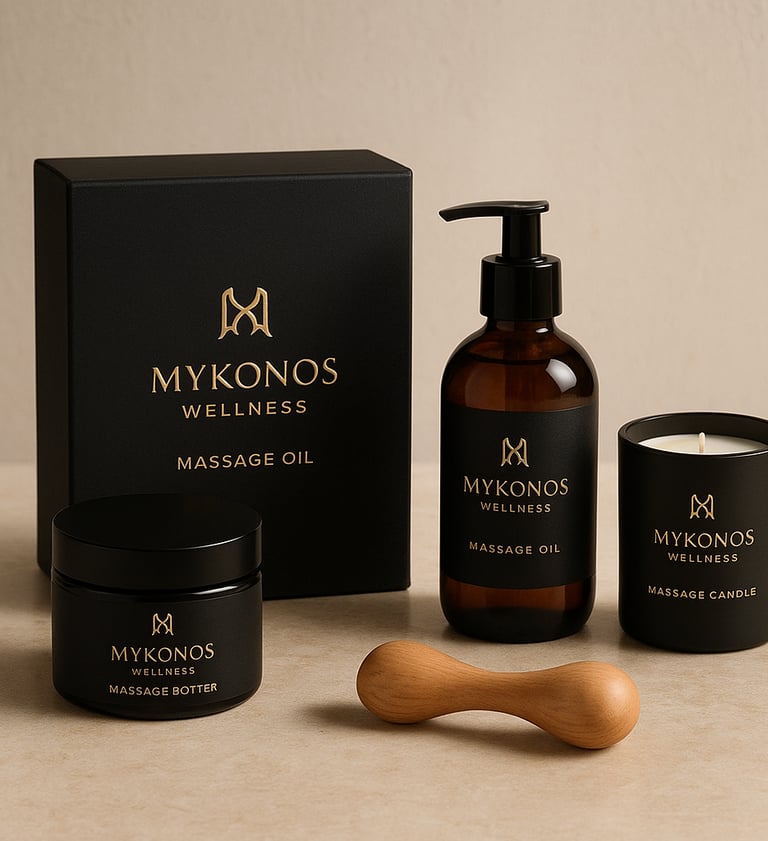 At Mykonos Wellness, we believe that exceptional treatments begin with exceptional products. Every oil, cream, and tool we use is carefully selected to elevate your massage experience, nourish the skin, and promote deep, lasting wellness. Our commitment to quality ensures that every session feels luxurious, safe, and highly effective.
